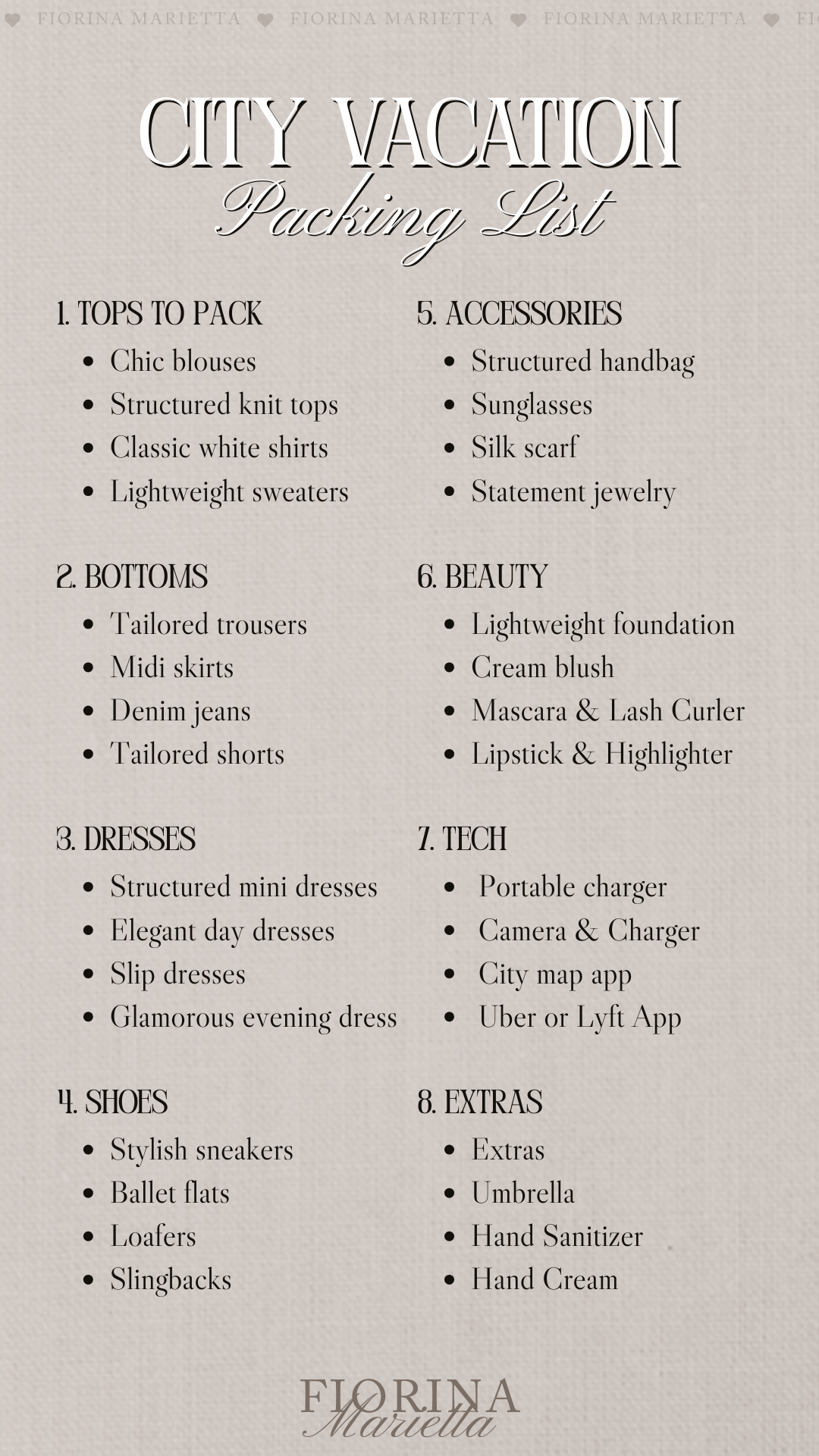 City Vacation Packing List