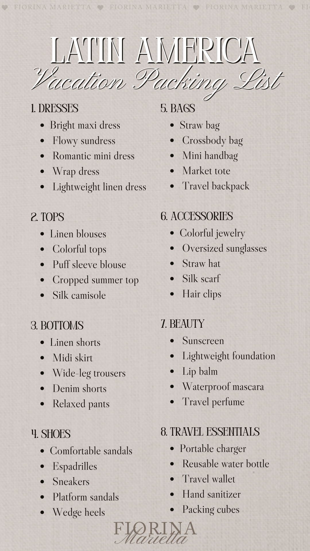 Latin America Vacation Packing List