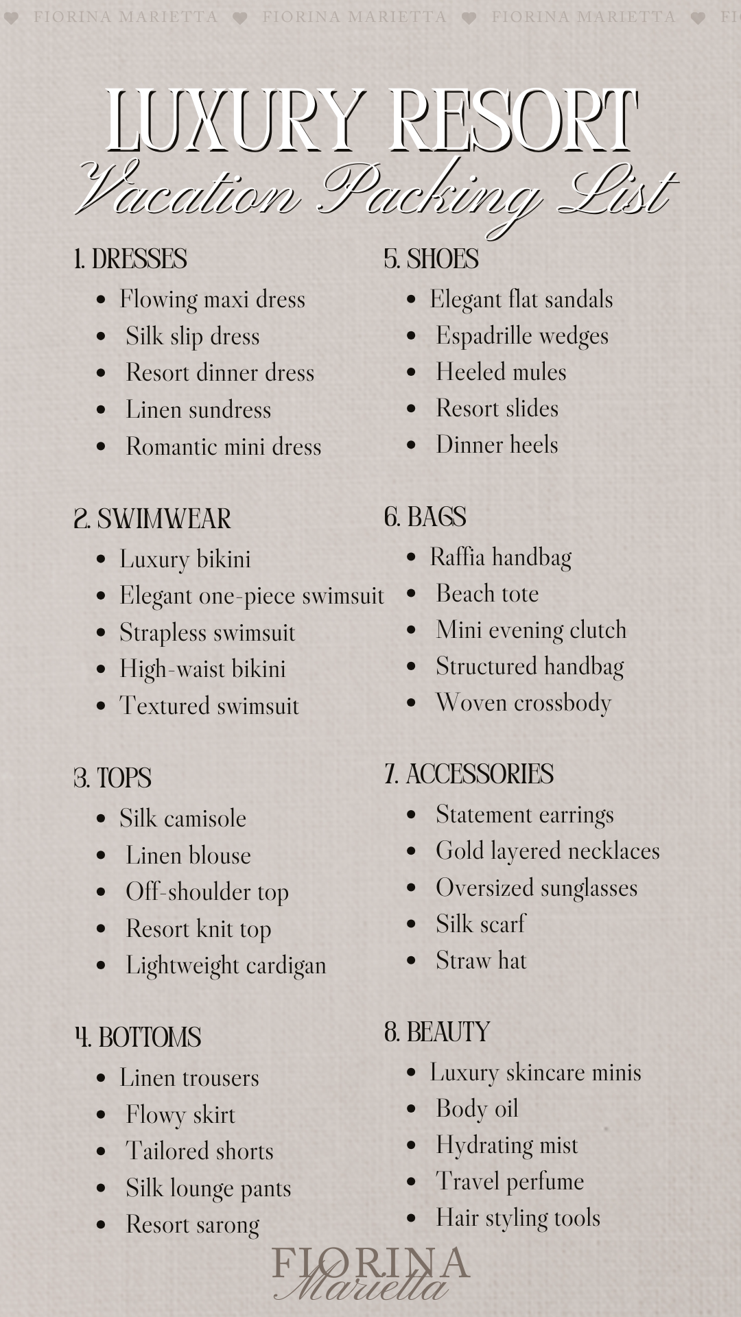 Luxury Resort Vacation Packing List