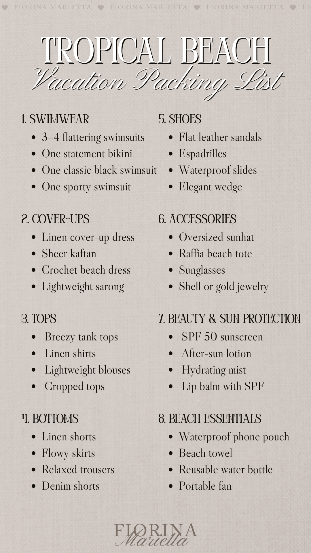 Tropical Beach Vacation Packing List