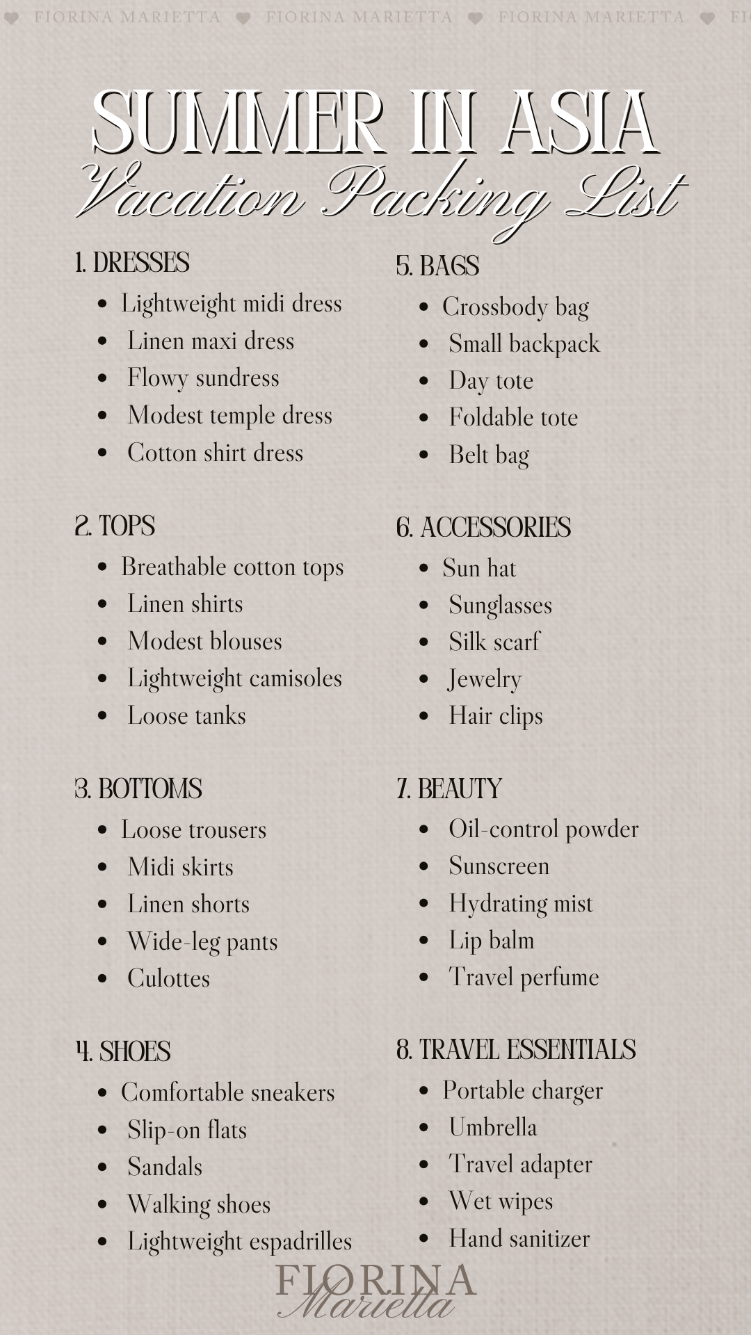 Asia Summer Vacation Packing List