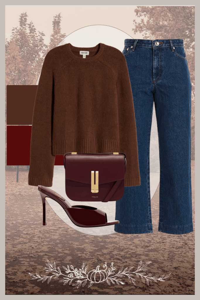Chocolate Sweater \ The perfect Jeans \ Burgundy Heels \ Burgundy Crossbody Bag