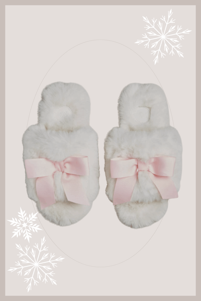 Fuzzy Slippers with Bow Detail