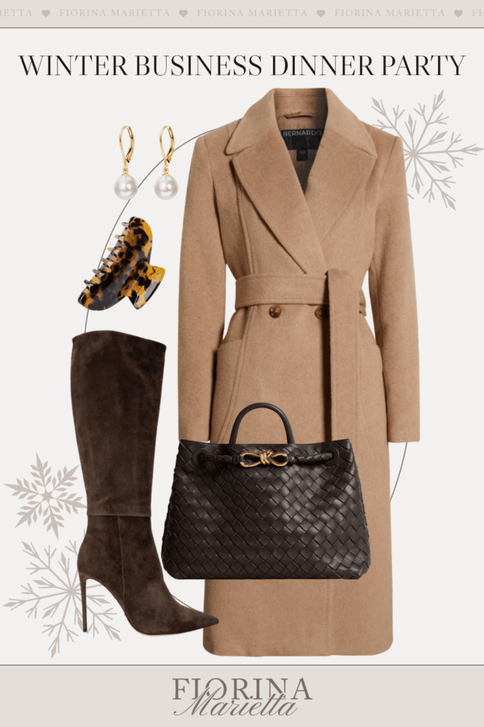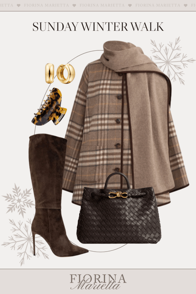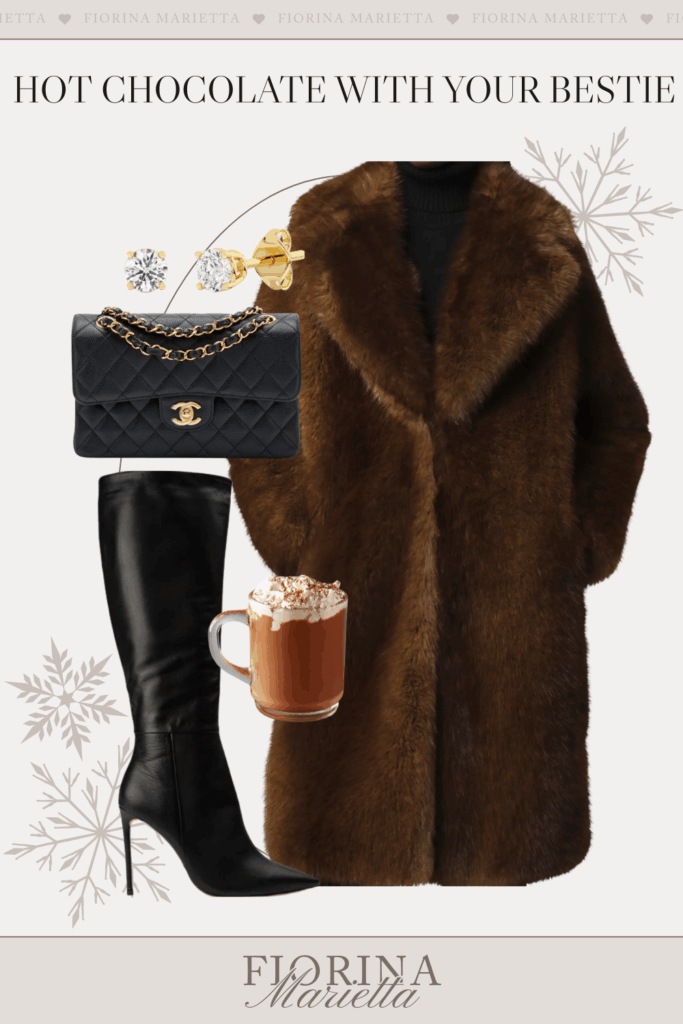This coat is so flattering and also extremely warm. Wearing a coat like this one will elevate your outfit instantly and will make anything look more expensive. You could wear a rag under this coat, and nobody would know because this coat will make anything look like a million dollars. The dress I’m wearing in the photo above would just be a regular cable knit, but with this coat, the outfit looks so expensive and definitely old money. That is the key to dressing elegantly and elevating your looks. One single item can make or break your entire look, so choose wisely.
