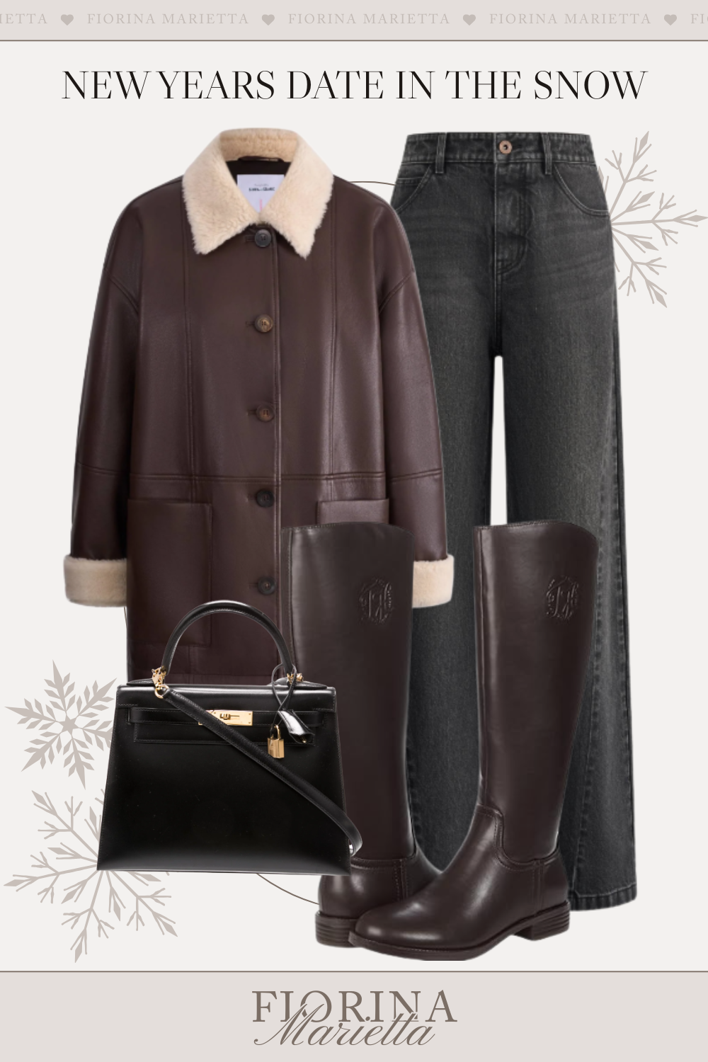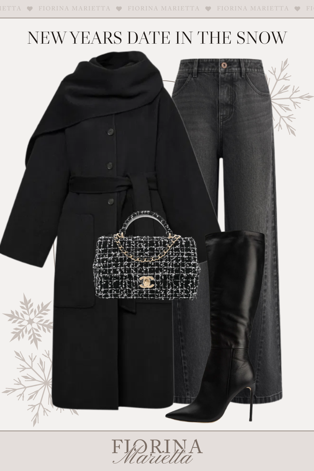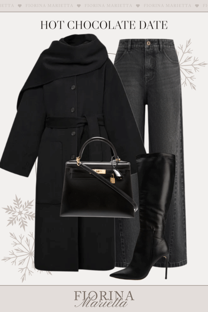 Knee-high boots + jeans = the easiest winter power move. Tuck your jeans into sleek leather boots ( or layer them over) and throw on a structured coat or long cardigan. It’s minimal, chic, and perfect for both city errands and winter dates.
